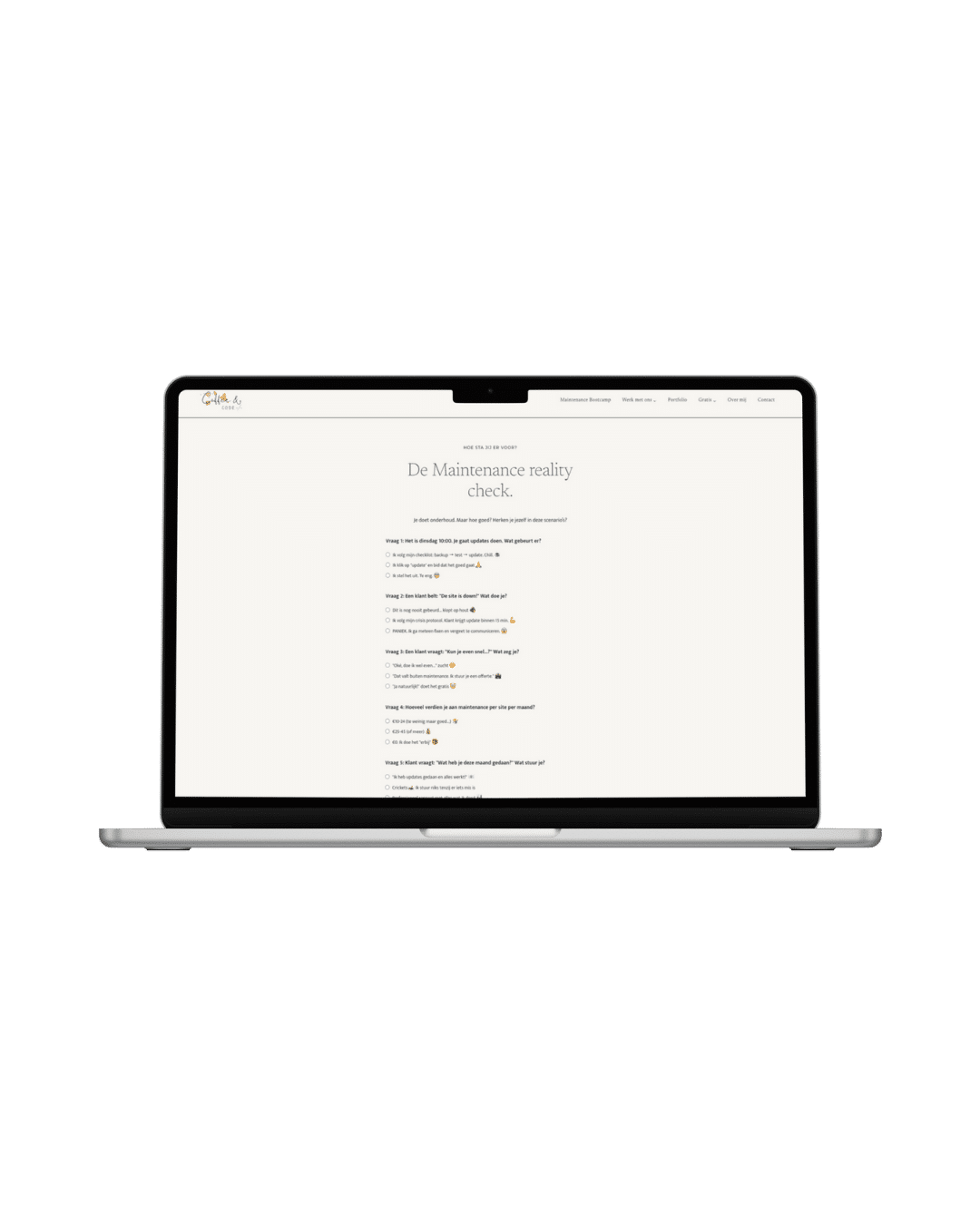 Ik ga met je checken hoe je nu maintenance doet. Je workflows. Je communicatie. Je pricing. Je systemen.